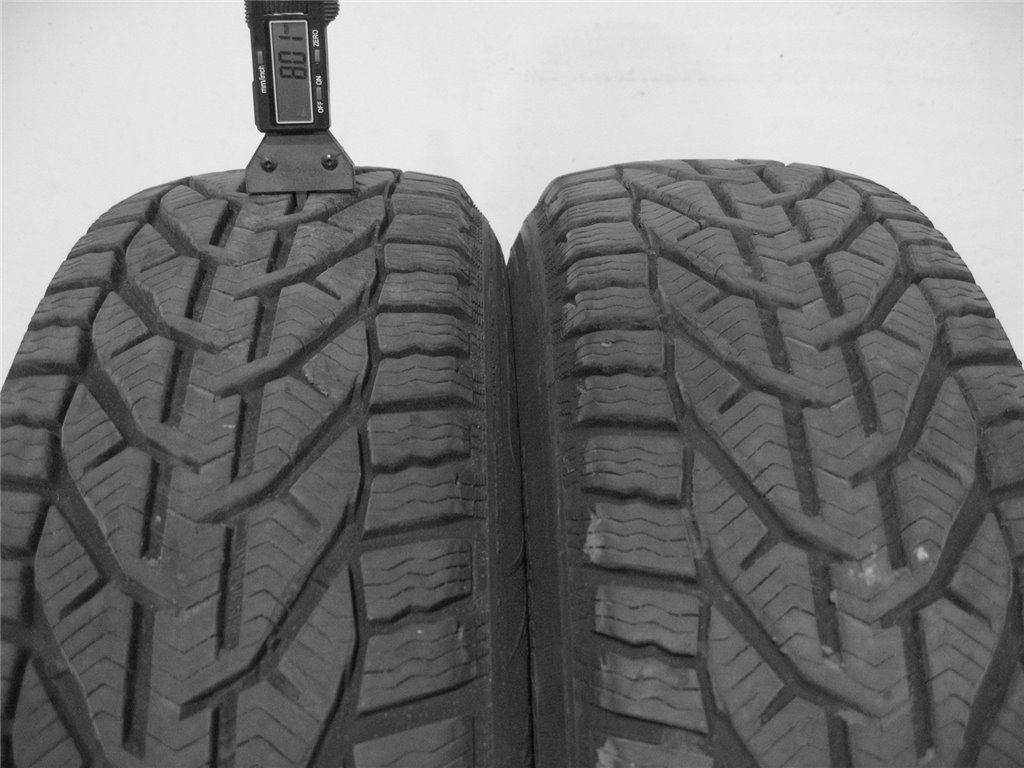 Nová pneumatika má obvyklou hloubku dezénu ve svém středu = středové drážce/drážkách 8 mm